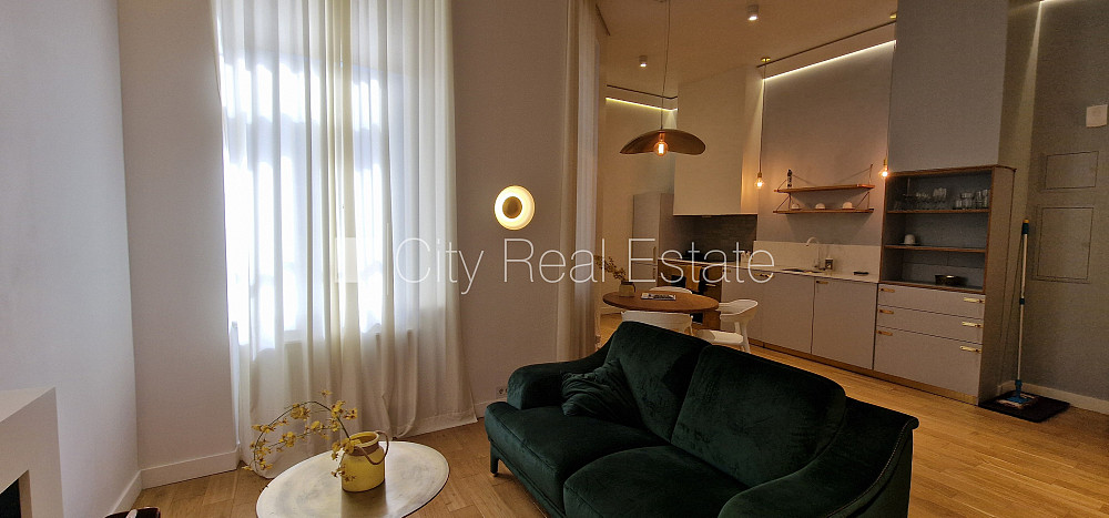Фасадный дом, реновированный дом, благоустроенная озеленённая территория, возможность аренды парковки, объект охраняет физическая охрана, лифт, лестничная клетка после капитального ремонта, количество спален 1 шт., студио, кухня объединена с гостинной, высокие потолки, автоматическая система отопления, полная отделка , деревянные стекло-пакетные окна, новая сантехника, паркетный пол, совмещённый санузел, душевая кабина, встроенная кухня, встроенные стенные шкафы, двуспальная кровать, стол, стулья, телевизор, холодильник, посудомоечная машина, электрическая плита, духовка, стиральная машина, oптический интернет, сигнализация, тренажерный зал, освобождена, до парка 30 м, стратегически выгодное место, до Старой Риги 1 км, CITY REAL ESTATE ID - 516630