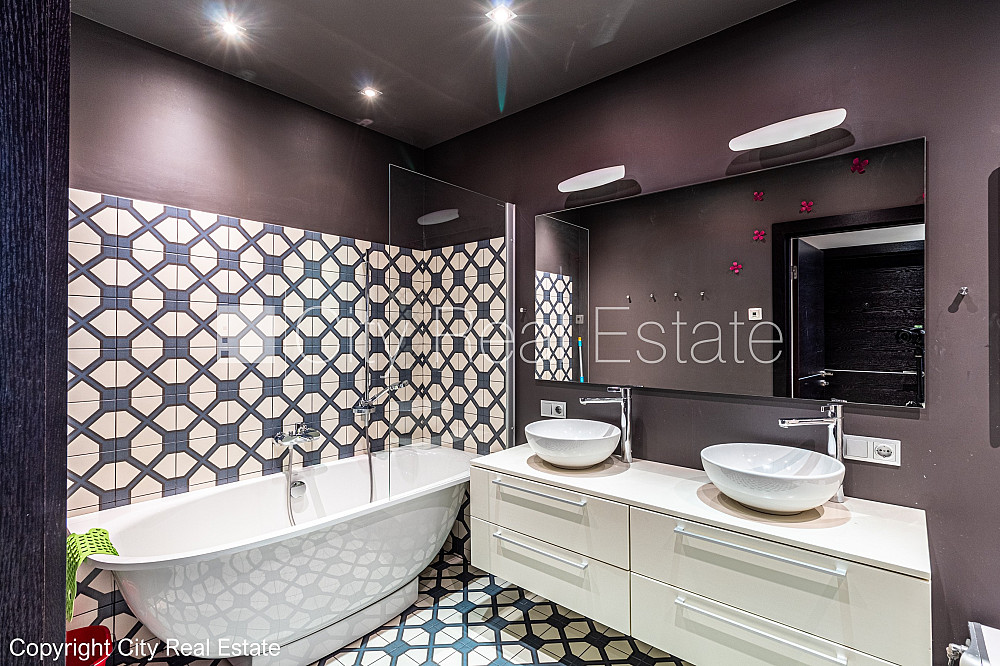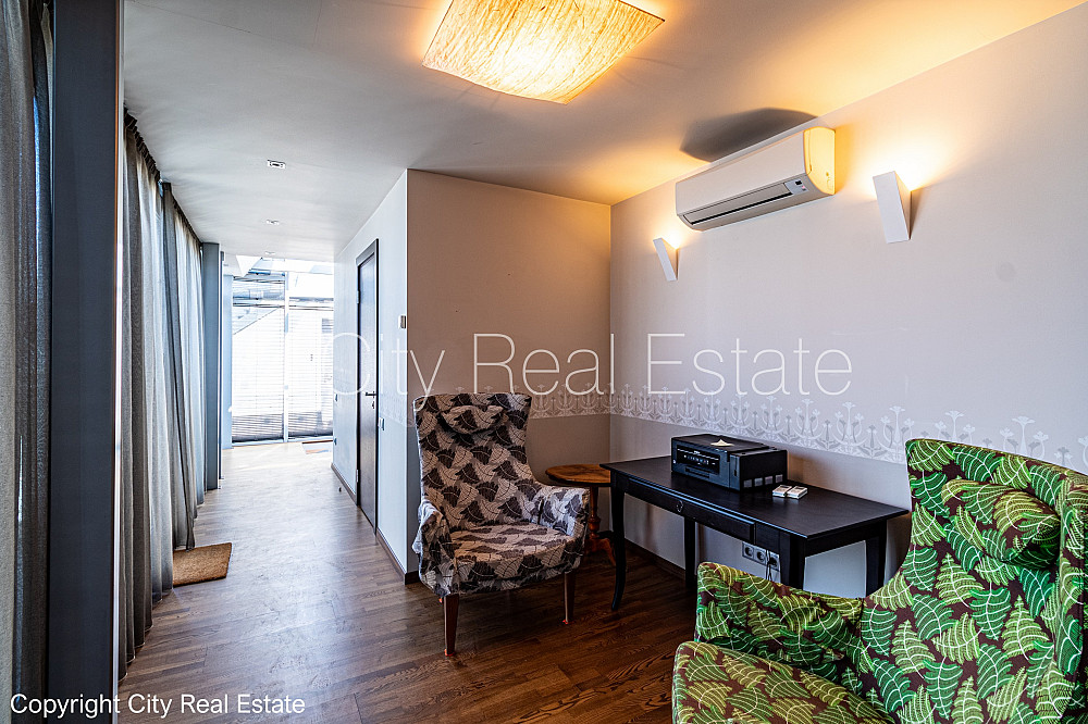 Фасадный дом, реновированный дом, поменянное покрытие крыши, фасад с декоративной штукатуркой, благоустроенная озеленённая территория, подъездная дорога покрыта брущаткoй, въездные ворота оснащены автоматической подъёмной системой, гараж на одну машину, объект охраняет физическая охрана, апартаменты люкс 205 м2, лифт, верхний этаж с терассой, терасса, количество спален 3 шт., трёхэтажный, помещение для отдыха, гардеробная, kабинет, высокие потолки, радиаторы с терморегуляцией, камин, автоматическая система отопления, счетчики отопления, индивидуальная система учета отопления, полная отделка , три уровня, полы с подогревом, большие витрины, алюминевые стекло-пакетные окна, встроенная светотехника, паркетный пол, три санузла, ванна, душевая кабина, биде, встроенная кухня, встроенные стенные шкафы, диван, кровать, двуспальная кровать, стол, стулья, кресла для отдыха, кондиционер, холодильник, посудомоечная машина, электрическая плита, духовка, стиральная машина, oптический интернет, сигнализация, круглосуточное видеонаблюдение, круглосуточная охрана, возможна уборка, закрытая лестничная клетка, до парка, стратегически выгодное место, до остановки трамвая, CITY REAL ESTATE ID - 515987