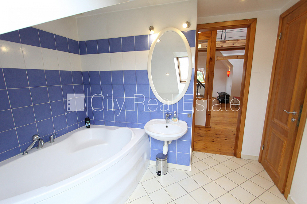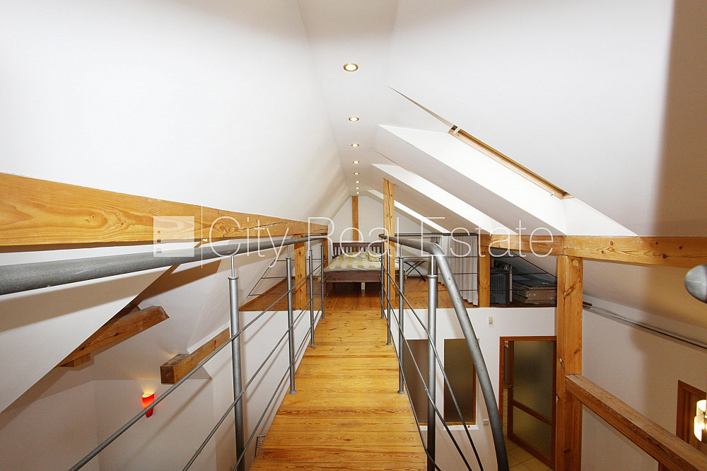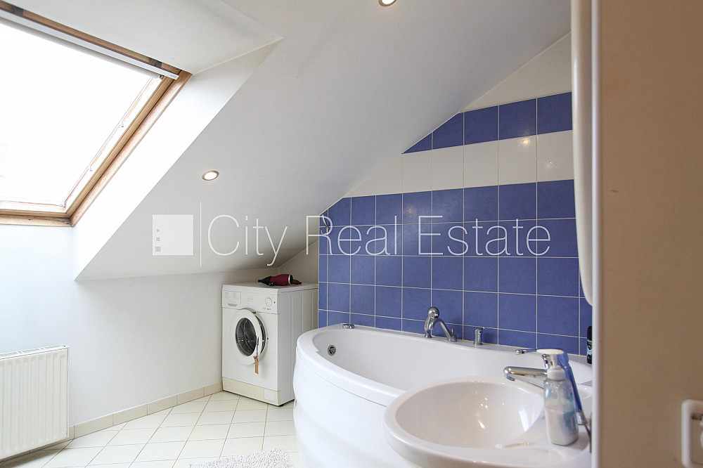 Фасадный дом, вход с улицы, мансарда, сауна, смежно-изолированные комнаты, высокие потолки, газовое отопление, пластиковые стекло-пакетные окна, мансардные окна, покрытие пола из елки, кафельный пол, раздельный санузел, ванна джакузи, встроенная кухня, встроенные стенные шкафы, диван, кровать, двуспальная кровать, стол, стулья, шкаф, телевизор, холодильник, интернет, кабельное телевидение, лестничная клетка на кодовом замке, освобождена, стратегически выгодное место, CITY REAL ESTATE ID - 424594