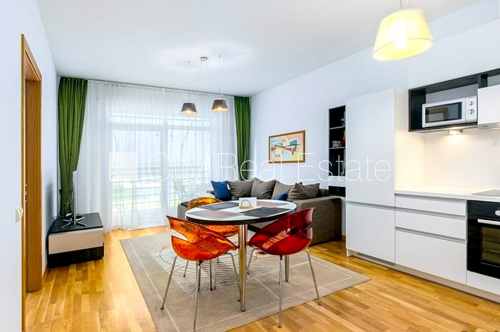 Новостройка, фасадный дом, благоустроенная озеленённая территория, гараж на одну машину, гаражные ворота оснащены автоматической подъёмной системой, подземная стоянка, лифт, лоджия 6,8 м2, количество спален 2 шт., студио, кухня объединена с гостинной, автоматическая система отопления, счетчики отопления, индивидуальная система учета отопления, полная отделка , большие витрины, паркетный пол, совмещённый санузел, ванна, встроенная кухня, встроенные стенные шкафы, двуспальная кровать, стол, стулья, кондиционер, телевизор, холодильник, духовка, стиральная машина, oптический интернет, сигнализация, освобождена, до центра города 1 км, стратегически выгодное место, до универмага 300 м, до Старой Риги 600 м, CITY REAL ESTATE ID - 517687