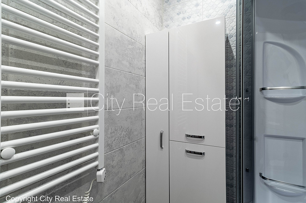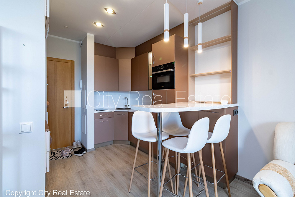 Новостройка, фасадный дом, благоустроенный озеленённый двор, территория обнесена железным забором, въездные ворота оснащены автоматической подъёмной системой, место для машины, лифт, балкон 3.6 м2, окна выходят на улицу, широкий вид из окна, студио, кухня объединена с комнатой, помещения в подвале 6 м2, автоматическая система отопления, пластиковые стекло-пакетные окна, ламинатный пол, кафельный пол, совмещённый санузел, душ джакузи, встроенная кухня, встроенные стенные шкафы, раздвижной угловой диван, барная стойка, барные стулья, комод, холодильник, посудомоечная машина, электрическая плита, духовка, вытяжка, стиральная машина, oптический интернет, домофон, круглосуточное видеонаблюдение, закрытая лестничная клетка, продаётся со всем видимым на фотографии оборудованием, освобождена, зарегестрирована в земельной книге, стратегически выгодное место, CITY REAL ESTATE ID - 517742