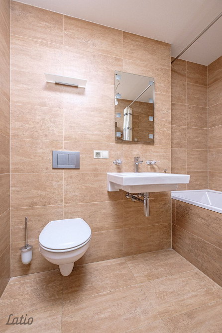 Dzīvoklī ir divas atsevišķas istabas: galvenā guļamistaba ar vannasistabu un garderobes telpu un otra istaba, kuru var izmantot gan kā dzīvojamo istabu, gan kā darba kabinetu, kā arī gaiša viesistaba, kas apvienota ar virtuves daļu. Virtuvē iebūvēta virtuves iekārta ar sadzīves tehniku. Ir pieejama arī otra vannasistaba, kura aprīkota ar dušas kabīni un nepieciešamo santehniku. Visas istabas ir pilnībā mēbelētas. Gaiteņa daļā ir liels iebūvējamais skapis. Cenā iekļauta un pieejama virszemes stāvvieta ar barjeru norobežotā ēkas pagalmā, kā arī noliktavas telpa pagrabstāvā, ērta lielgabarīta sezonas mantu novietošanai. Namā pieejams arī diennakts dežurants, kas nodrošina kārtību koplietošanas telpās. Iedzīvotāju ērtībai namā ir gan divi pasažieru lifti, gan kravas lifts.