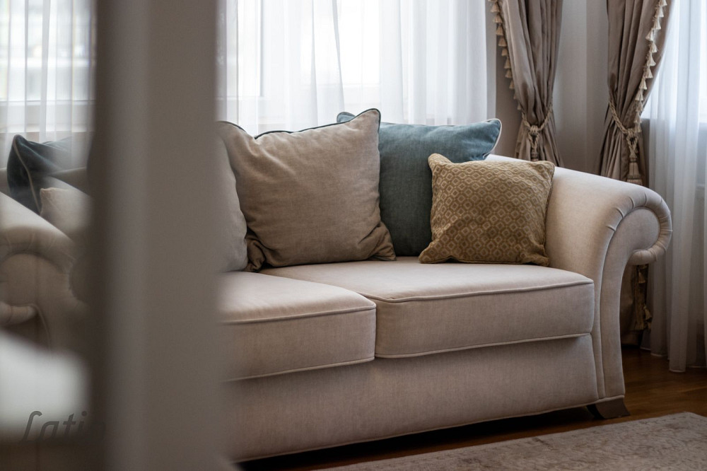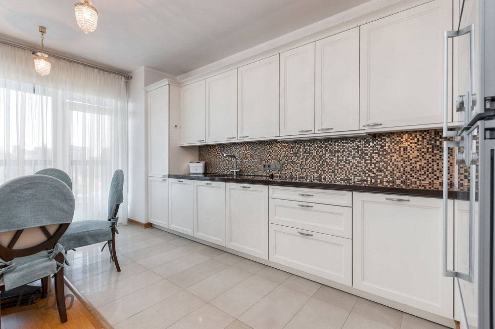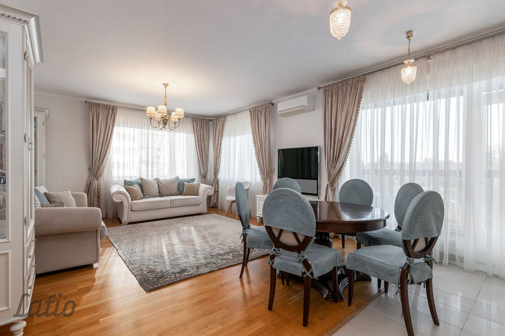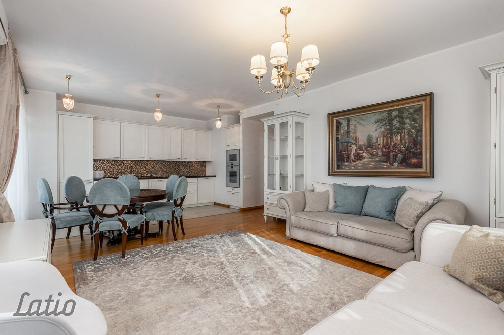 Plaša dzīvojamā istaba ar logiem uz divām debespusēm un iestiklotu lodžiju, kas vērsta austrumu virzienā. Trīs guļamistabas. Itāļu mēbeles, virtuvē trauku mazgājamā mašīna, ledusskapis, "Gaggenau" plīts virsma, cepeškrāsns un mikroviļņu krāsns. Galvenā guļamistaba aprīkota ar Somijā ražotu, kvalitatīvu, ergonomisku "Unikulma" matraci un gultu ar regulējamu augstumu; turpat individuālas labierīcības ar vannu un istabu-skapi. Otras labierīcības ar dušu un 2024.gadā iegādātu "Miele" veļasmašīnu. Abās labierīcībās siltās grīdas.