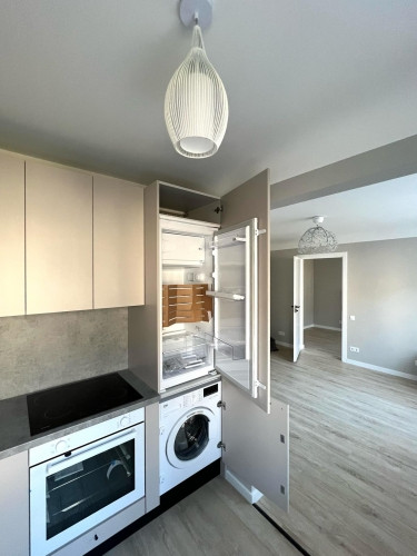 Продается прекрасная, светлая, солнечная и уютная квартира в Тейка. Только что после качественного ремонта, в ней никто не жил. Две светлые комнаты, высокий первый этаж, вид во двор (зеленая зона). Полностью новая проводка. Стены выровнены. Новые стеклопакеты с 3 стеклами. Полностью оборудованная кухня - встроенная техника (холодильник, стиральная машина, посудомоечная машина, духовой шкаф, электрическая варочная панель, вытяжка). Большой и удобный встроенный шкаф-купе в коридоре. При необходимости есть подвал. Между улицами Раунас и Бикерниеку, в тихом, зеленом дворе. Звоните, пишите, договоримся о времени просмотра