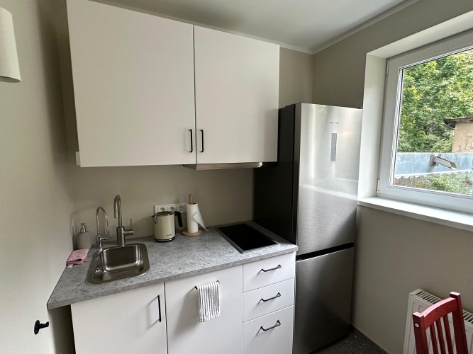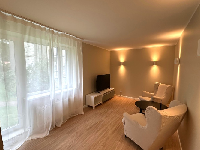 Продаётся дизайнерская 2-комнатная квартира в Иманте с уровнем качества и отделки нового проекта. Квартира полностью меблирована и оснащена всей необходимой техникой. Квартира свободна можно сразу заехать и жить без дополнительных вложений. В квартире установлена встроенная кухня, посудомоечная машина, шкаф, электрическая плита и стиральная машина. Установлены металлическая входная дверь и стеклопакеты. Выполнен качественный, продуманный ремонт с использованием высококачественных отделочных материалов, создающий уютную, современную и комфортную атмосферу для жизни. Функциональная и удобная планировка: гостиная, отдельная кухня, спальня и ванная комната. Комнаты изолированы. Перепланировка согласована. Низкие коммунальные платежи. Дом обслуживается товариществом собственников. В подъезде выполнен ремонт установлен домофон, новые почтовые ящики, благоустроены тротуар и подъездная дорога. Парковка предназначена только для жителей дома и доступна по пропускам. Удобное и востребованное расположение рядом магазины Rimi, Lidl и Mego, а также спортивный центр Иманты. Остановки общественного транспорта (трамвай и автобус) в 3 минутах ходьбы. До центра города около 20 минут на общественном транспорте или 10 минут на автомобиле. Клиника находится в пешей доступности.