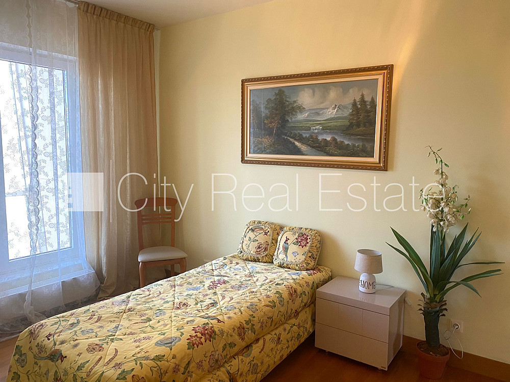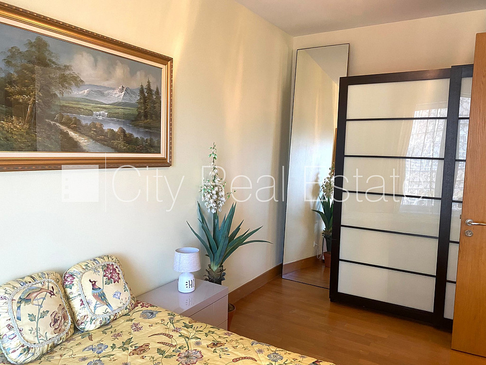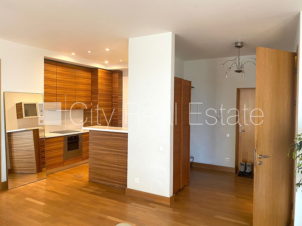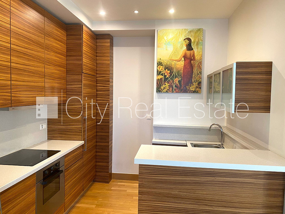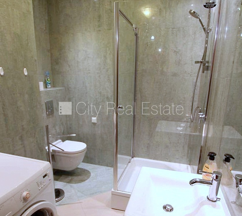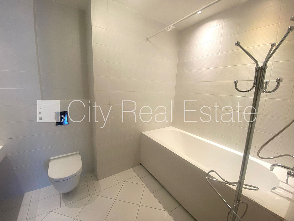 Проект - Centra Nams (Центра Намс), новостройка, благоустроенный озеленённый двор, подземная стоянка, система кондиционирования воздуха, количество спален 2 шт., изолированные комнаты, студио, кухня объединена с гостинной, гардеробная 4.87 м2, покрашенные стены, новая сантехника, паркетный пол, два санузла, ванна, душевая кабина, встроенная кухня, двуспальная кровать, гостинный стол, кресла для отдыха, шкаф для одежды, телевизор, холодильник, электрическая плита, духовка, вытяжка, стиральная машина, круглосуточная охрана, закрытая лестничная клетка, CITY REAL ESTATE ID - 517979