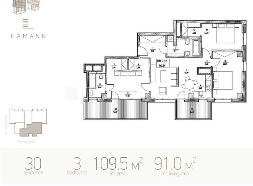 Проект - Philosophers Residence (Пхилосопхерс Ресиденце), благоустроенный озеленённый двор, подземная стоянка, лифт, два балкона, терасса, количество спален 3 шт., студио, кухня объединена с гостинной, покрашенные стены, новая сантехника, паркетный пол, два санузла, ванна, душевая кабина, встроенная кухня, встроенные стенные шкафы, круглосуточное видеонаблюдение, круглосуточная охрана, CITY REAL ESTATE ID - 517170