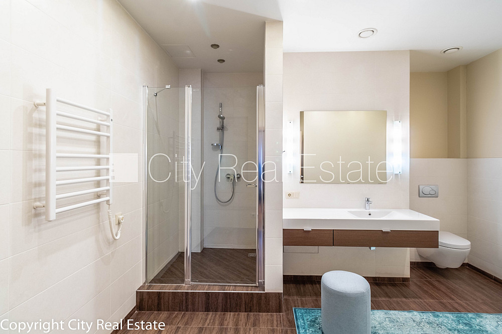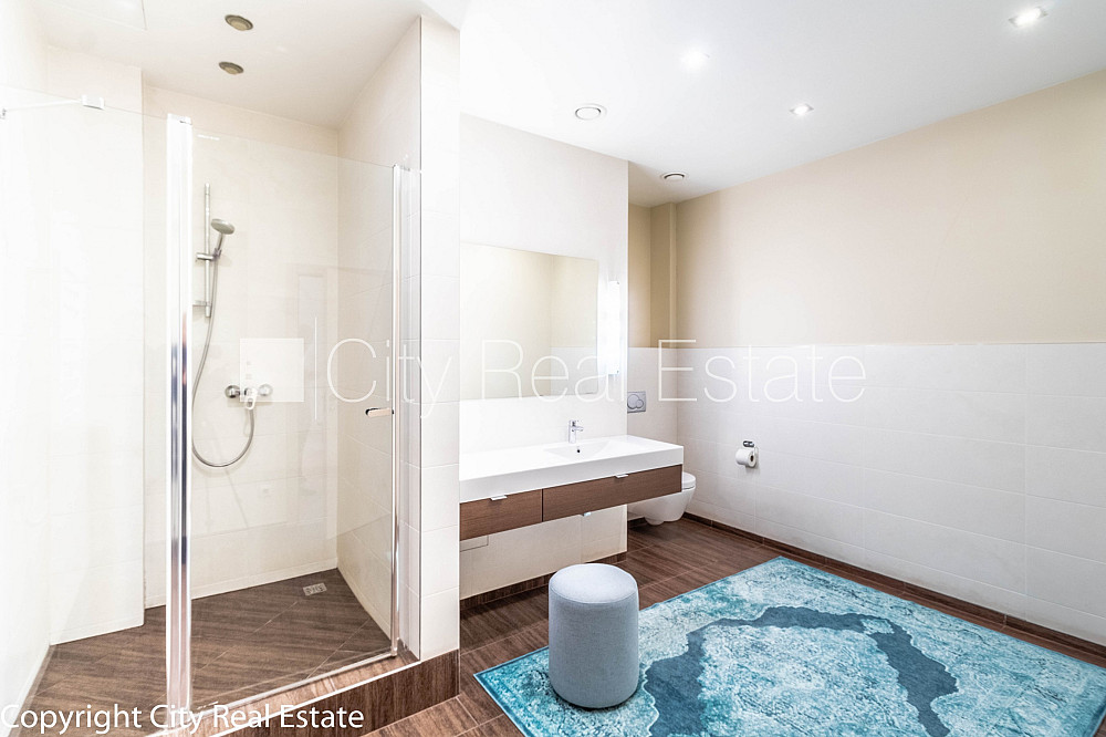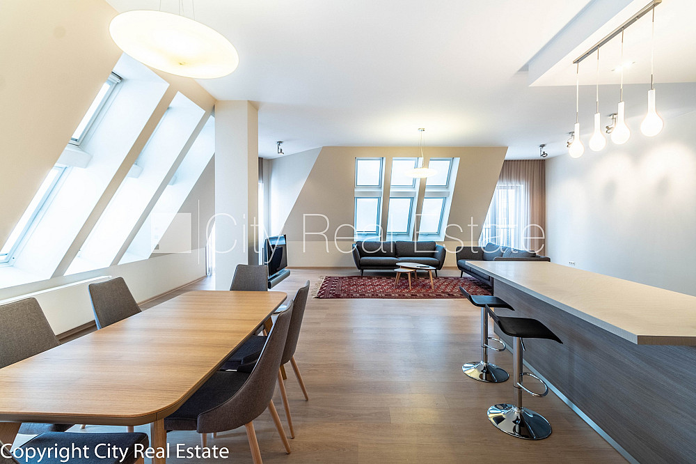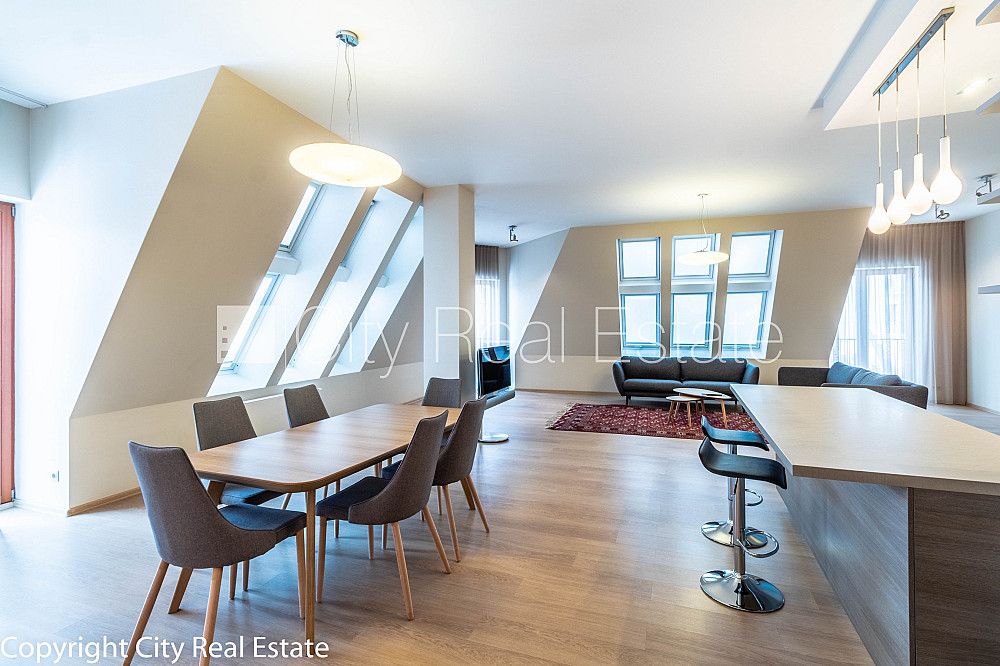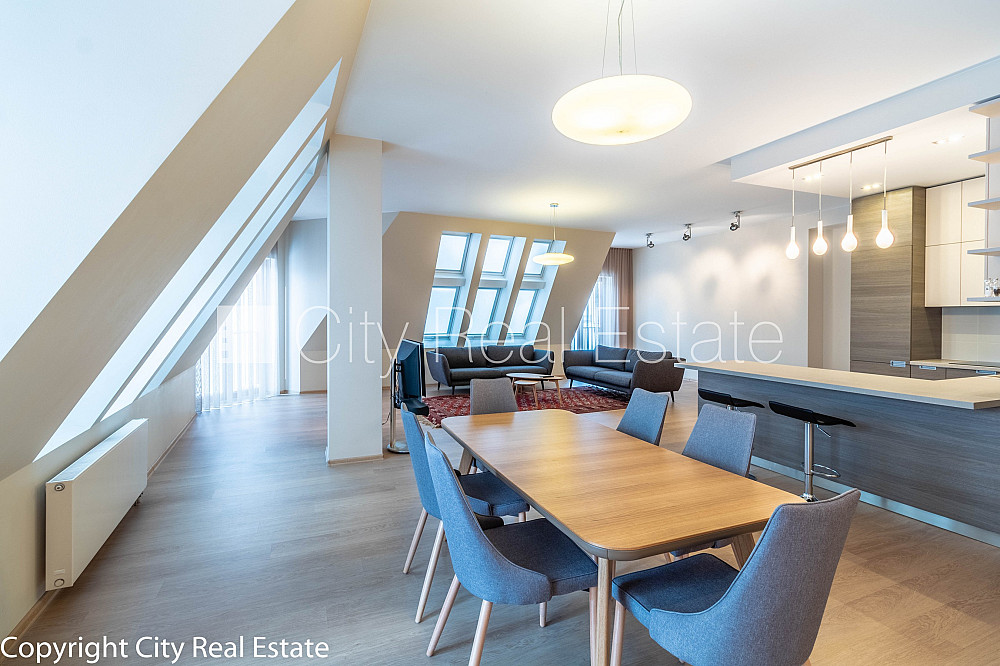 Проект - Rīdzenes Rezidence (Ридзенес Резиденце), фасадный дом, подъездная дорога покрыта брущаткoй, место для машины, подземная стоянка, апартаменты люкс 170 м2, лифт, французский балкон, окна выходят в обе стороны дома, изолированные комнаты 3 шт., студио, кухня объединена с гостинной, гардеробная, холл, подсобка, отвесные потолки, радиаторы с терморегуляцией, центральное отопление, счетчики отопления, индивидуальная система учета отопления, белая отделка, мансардные окна, металлическая дверь, паркетный пол, кафельный пол, новая электроинсталяция, два санузла, ванна, душевая кабина, биде, встроенная кухня, встроенные стенные шкафы, кондиционер, телевизор, холодильник, посудомоечная машина, электрическая плита, духовка, стиральная машина, интернет, круглосуточное видеонаблюдение, круглосуточная охрана, лестничная клетка на кодовом замке, освобождена, стратегически выгодное место, CITY REAL ESTATE ID - 425117