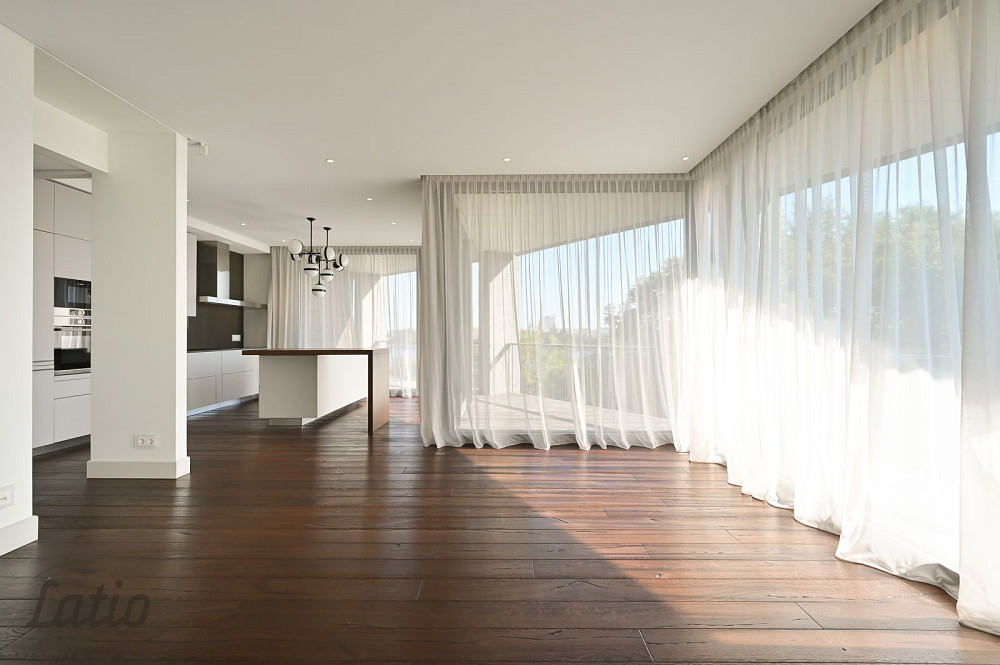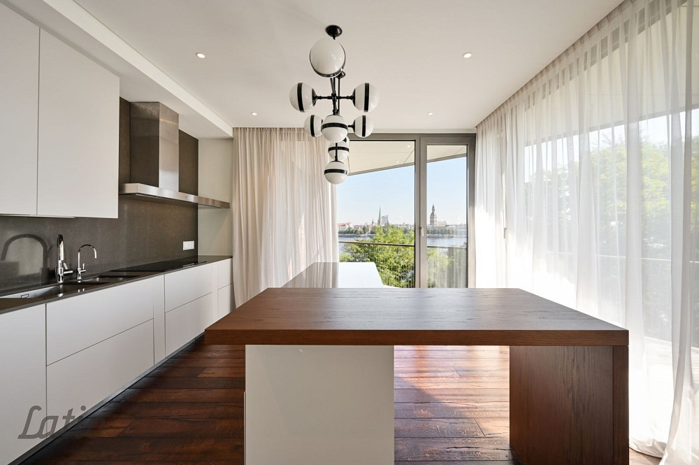 Kopējā dzīvokļa platība ir 173,4 m, ko papildina terase 45 m lieliska vieta rīta kafijai vai vakara mieram, vērojot Rīgas panorāmu, Ķīpsalu un Daugavas plašumu.