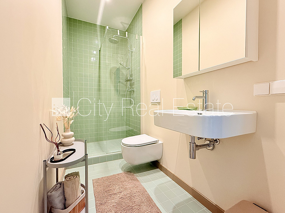 Здание во дворе, бесплатная стоянка во дворе, окна выходят во двор, одна изолированная комната, студио, кухня объединена с гостинной, одна проходная комната, центральное отопление, полы с подогревом в ванной, пластиковые стекло-пакетные окна, металлическая дверь, новая сантехника, ламинатный пол, совмещённый санузел, ванна, встроенная кухня, встроенные стенные шкафы, диван, гостинный стол, кухонный стол, кухонные стулья, телевизор, электрическая плита, духовка, стиральная машина, лестничная клетка на кодовом замке, за данный объект комиссия за посреднические услуги взымается в размере половины месячной арендной платы данного объекта, CITY REAL ESTATE ID - 510511