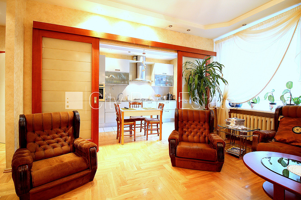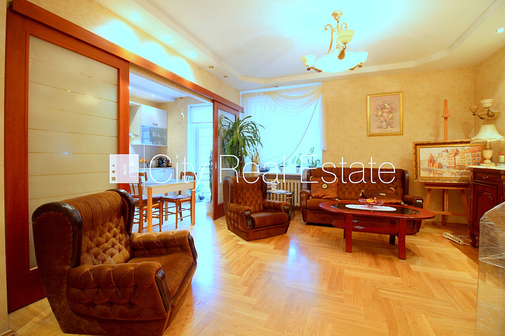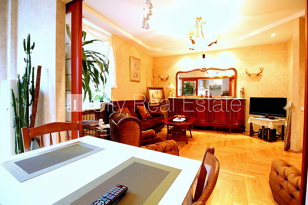 Земля в собственности, фасадный дом, кирпичные стены, закрытый двор, въездные ворота оснащены автоматической подъёмной системой, вход с улицы, балкон, лоджия, окна выходят в обе стороны дома, широкий вид из окна, количество спален 3 шт., изолированные комнаты 3 шт., гостиная 23 м2, студио, кухня объединена с гостинной 33,7 м2, кухня 10,7 м2, гардеробная 4 м2, высокие потолки, помененные радиаторы, центральное отопление, пластиковые стекло-пакетные окна, выравненные стены, новая сантехника, встроенная светотехника, паркетный пол, помененная канализационная система, два санузла, ванна, душевая кабина, встроенная кухня, встроенные стенные шкафы, кровать, двуспальная кровать, стол, стулья, кресла для отдыха, трёхместное кресло для отдыха, холодильник, посудомоечная машина, электрическая плита, духовка, газовая плита, стиральная машина, oптический интернет, сигнализация, домофон, закрытая лестничная клетка, освободится в июле, фото до ремонта, стратегически выгодное место, до Старой Риги 850 м, поможем оформить ипотечный кредит на приобретение этого имущества, больше фото на сайте, CITY REAL ESTATE ID - 426079