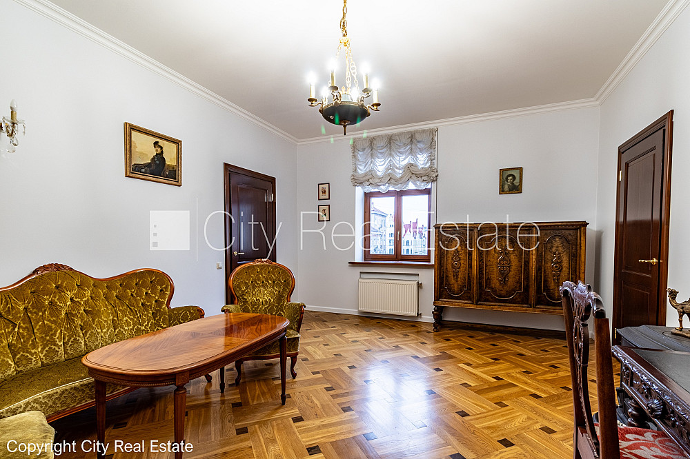 Земля в собственности, фасадный дом, поменянное покрытие крыши, плата за обслуживание одного квадратного метра в месяц 0,9 EUR, вход с улицы, лестничная клетка после косметического ремонта, окна выходят в обе стороны дома, изолированные комнаты 3 шт., гостиная 39,3 м2, смежно-изолированные комнаты, кухня 17,6 м2, гардеробная, подсобка, высокие потолки, несколько входов 2 шт., центральное отопление, возможна перепланировка, перепланированная, полная отделка , паркетный пол, кафельный пол, раздельный санузел, ванна, встроенная кухня, лестничная клетка на кодовом замке, освободится по необходимости, стратегически выгодное место, CITY REAL ESTATE ID - 514195