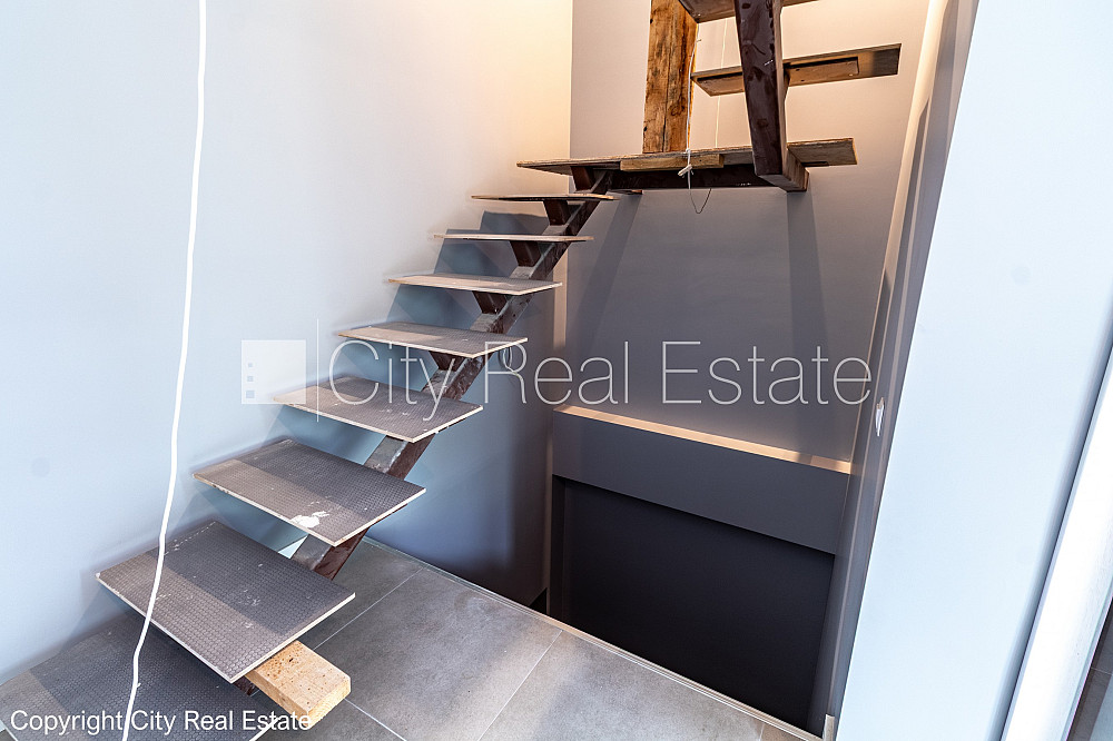 Земля в собственности, рядный дом, новостройка, количество квартир в здании 4 шт., стены из керамзитных блоков, фасад с декоративной штукатуркой, закрытая территория, территория обнесена деревянным забором, въездные ворота оснащены автоматической подъёмной системой, место для машины, места для нескольких машин, два балкона, терасса, окна выходят в обе стороны дома, широкий вид из окна, изолированные комнаты 4 шт., студио, кухня объединена с гостинной, холл, подсобка, высокие потолки, два входа, помещения в подвале, камин, центральное отопление, счетчики отопления, индивидуальная система учета отопления, пластиковые стекло-пакетные окна, паркетный пол, кафельный пол, новая электроинсталяция, три санузла, встроенная кухня, индукционная плита, духовка, вытяжка, сигнализация, дымовой детектор , освобождена, зарегестрирована в земельной книге, стратегически выгодное место, CITY REAL ESTATE ID - 517262