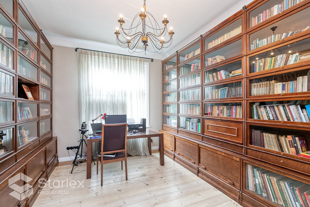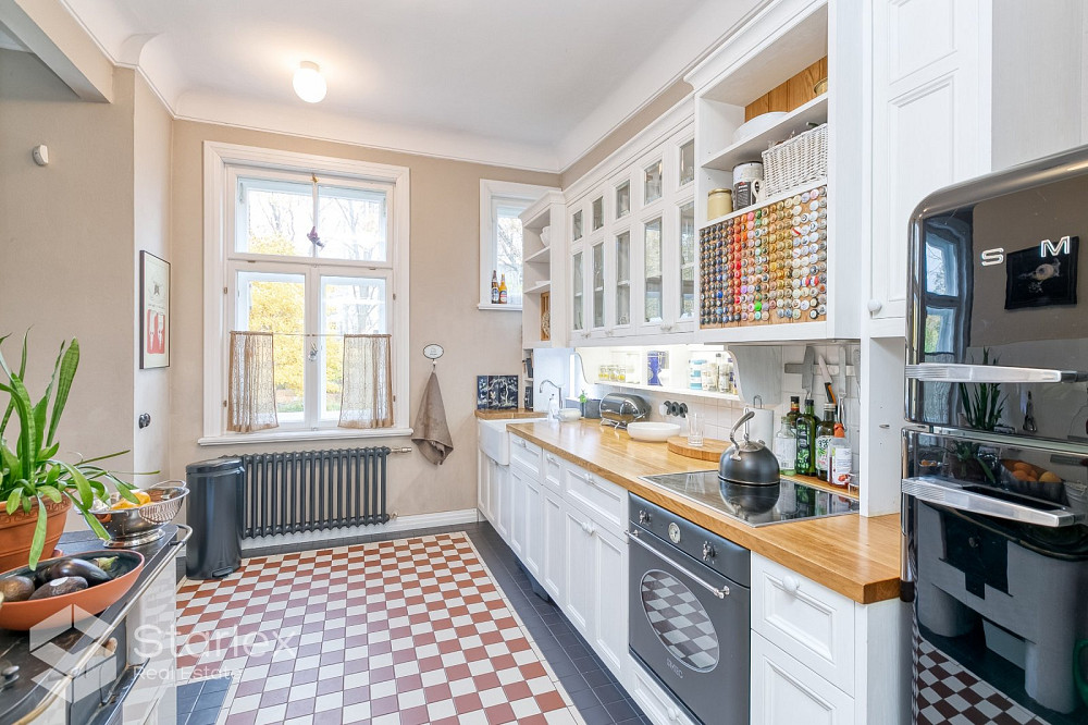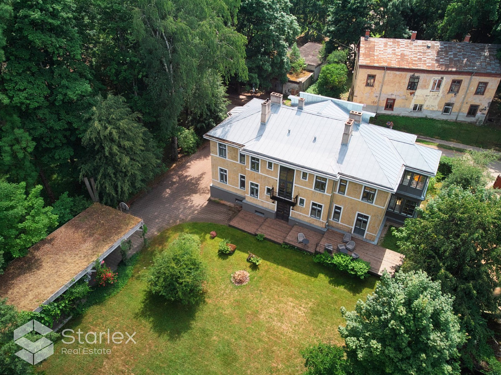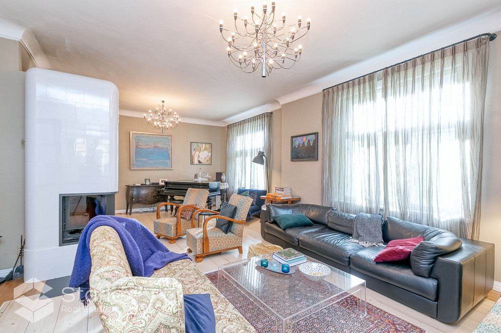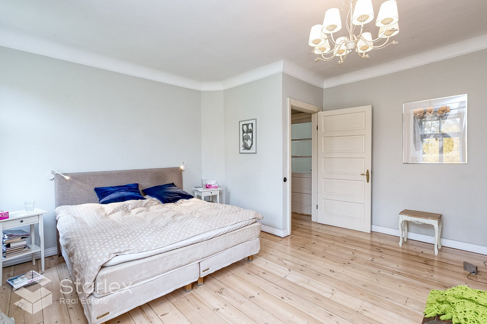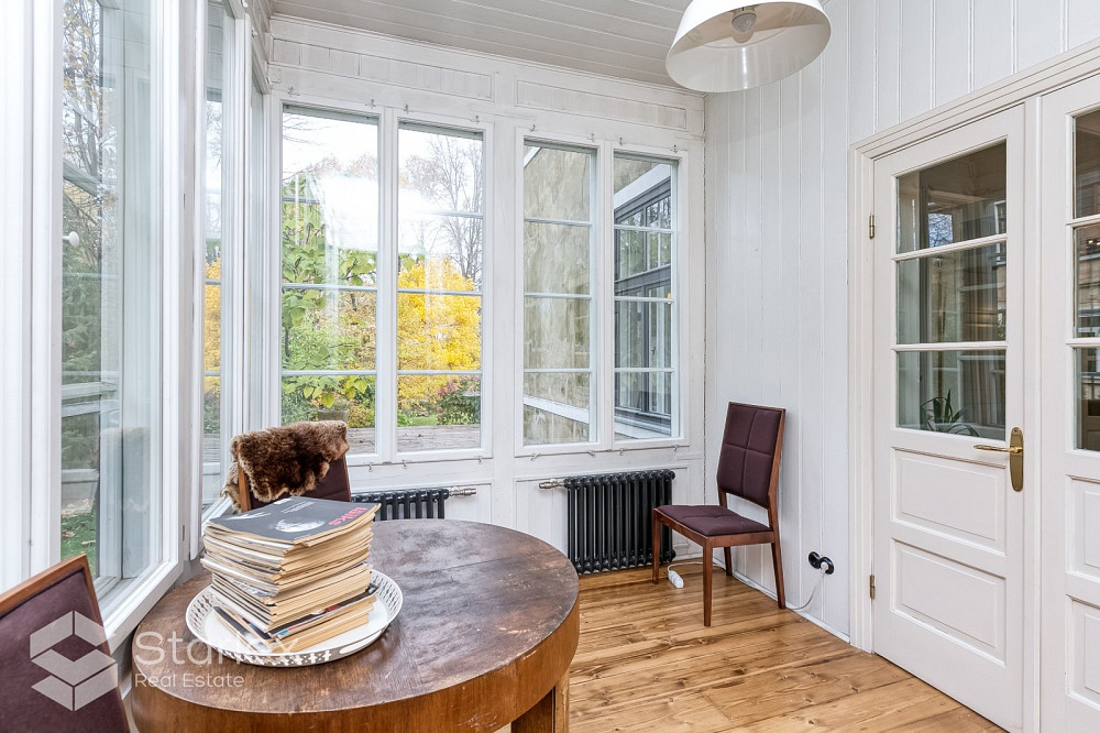 Возможна аренда с правом выкупа. Частный дом в соседней Пардаугаве, недалеко от Ботанического сада, номинирован на премию Архитектура года. Дом расположен на тихой улице, вдали от городской суеты. В настоящее время в доме проводится косметический ремонт: обновляются стены и потолки. Дом 1935 года постройки, капитальный ремонт дома в 2009 году. Все печи отреставрированы, одна переделана в камин. В доме утеплены стены и крыша. Автономное газовое отопление, городские водопровод и канализация. Оптоволоконный интернет. В доме 2 этажа и подвал. Планировка дома: Подвал - 67 м2 (комната отдыха, кладовая, техническое помещение). 1 этаж - 199,5 м2 (кухня с отдельной столовой, просторная гостиная с камином, кабинет, гардеробная, 2 комнаты, санузел, отапливаемая веранда, небольшая кладовая). 2 этаж - 208 м2 (6 комнат, 2 гардеробные, 2 санузла, отапливаемая веранда). Терраса 50 м2. Сарай, сауна и навес для машины расположены в отдельном здании. Общая площадь здания составляет 108 м (сауна 21 м, сарай/склад 15 м, навес для машины 36 м). Турецкая/паровая баня отделана эксклюзивной известковой штукатуркой таделакт. Крыша дома травяная, имеется терраса площадью 36 м. Недвижимость имеет просторную огороженную территорию, прекрасно ухоженный сад с редкими видами деревьев. В саду имеется капиллярная система полива. Все ремонтные работы были согласованы. Исторически дом был четырёхквартирным, но планировка позволяет снова создать четыре отдельные квартиры. Здание также легко адаптируется под нужды посольства, с возможностью переоборудования в стильный офис, медицинский кабинет или для другой коммерческой деятельности. Площадь земельного участка 2044 м2. Площадь жилого дома составляет 474,5 м2, терраса 50 м2, сауна 108 м2. Дом отреставрировали, стремясь сохранить атмосферу тридцатых годов как во внешнем, так и во внутреннем убранстве, сохранив исторические детали окна, веранды, печи, минимизировав планировку, но изменив назначение комнат. Чтобы подчеркнуть индивидуальность дома и его принадлежность к эпохе тридцатых годов, художником была создана патинированная краска. Цена 790 000 евро.
