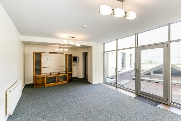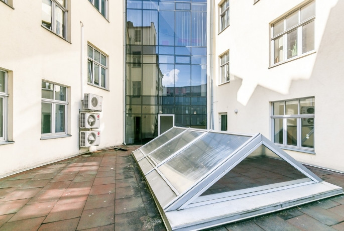 Fasādes ēka, 2. stāvs, ieeja no fasādes ēkas, logi vērsti, gan ēkas iekšpagalmu, gan no āra terases uz T/C ''Gallerija Centrs'' pusi, kopts un ļoti skaists namīpašums, apkārtnē attīstīta infrastruktūra, ļoti intensīva gājēju plūsma, ēkā atrodas tādi respektabli kaimiņi kā ''Amadeus'', ''Lulū Pica'', ēkas pirmajā stāvā 12 stundas (no 8:00-20:00) atrodas konsjēržs, tiek veikta videonovērošana, ir lifts.
