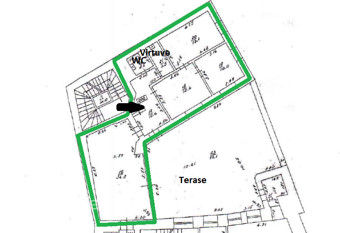 Plānojums: 1 plaša 34.00 kv.m. slēgta tipa darba telpa, 3 nelielas darba telpa platībā no 10.00 kv.m. līdz 15.00 kv.m., neliela priekštelpa, palīgtelpa, virtuve, terase.