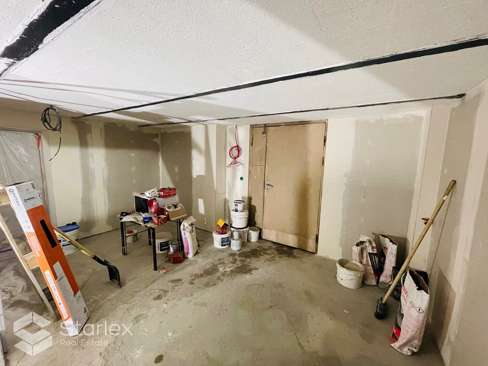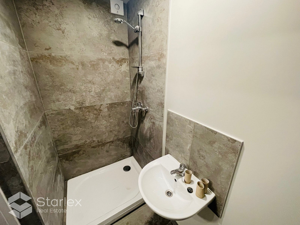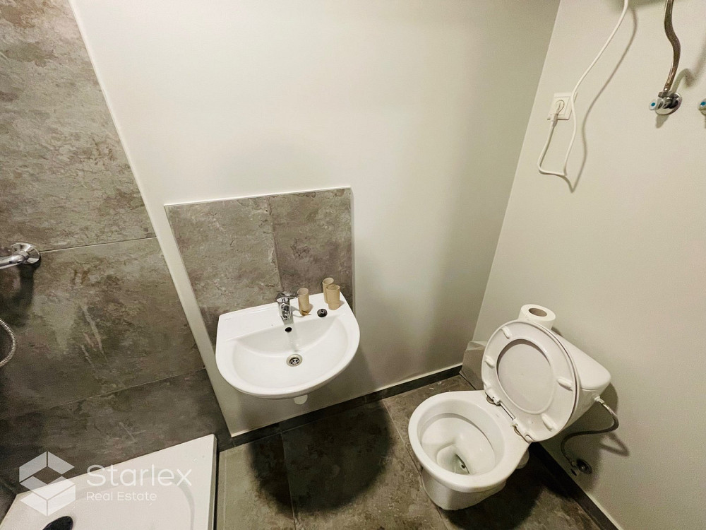 Plānojums: 2 darba telpas (abās pievilkts ūdens/kanalizācija izlietņu uzstādīšanai), duša/WC.