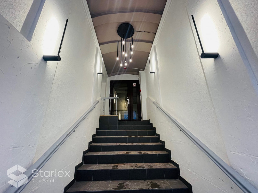 Skaista un reprezentabla kāpņu telpa, pie ieejas iespējams izvietot uzņēmuma reklāmas izkārtni.