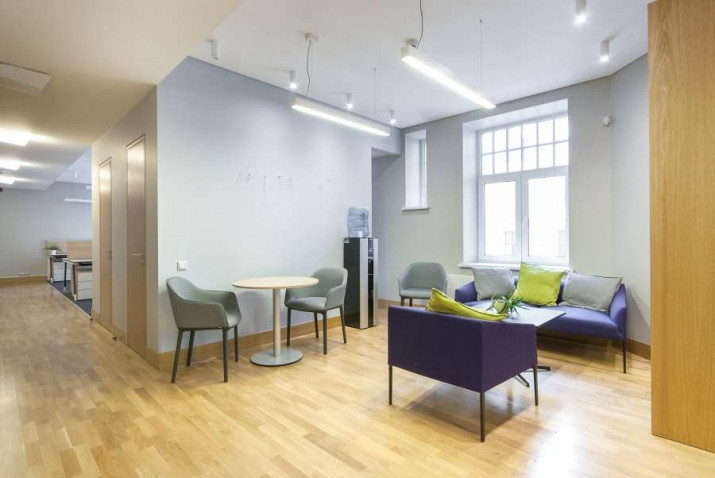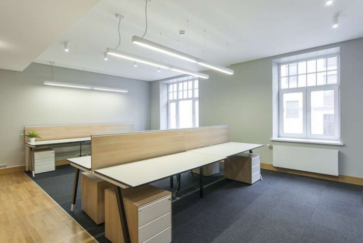 Kvalitatīvs un gaišs birojs pilsētas centrā. Skolas iela 11, starp Dzirnavu un Lāčplēša ielām. Renovēta, un sakopta pirmskara ēka, 3. stāvs. + Gaumīga biroja apdare, dizains un mēbeles. + Telpu plānojumā atvērta tipa telpa, kas provizoriski sadalīta ieejas recepcijā ar atpūtas zonu un atsevišķā darba zonā + 3 izolēti kabineti + mēbelēta pārrunu telpa + 2 Wc + iebūvēta virtuves niša, iebūvēta garderobes. + Birojā regulējama ventilācija, kondicionēšana, pvc verami logi, LED apgaismojums, piekļuve birojam no kāpņutelpas ar čipkartēm. + optiskais internets. + Uzstādītas apsardzes un ugunsdrošības signalizācijas. Ēka apsargāta + videonovērošana, piekļuve 24/7. Stāvvietu iespējas uz ielas, (Rīgas satiksme).