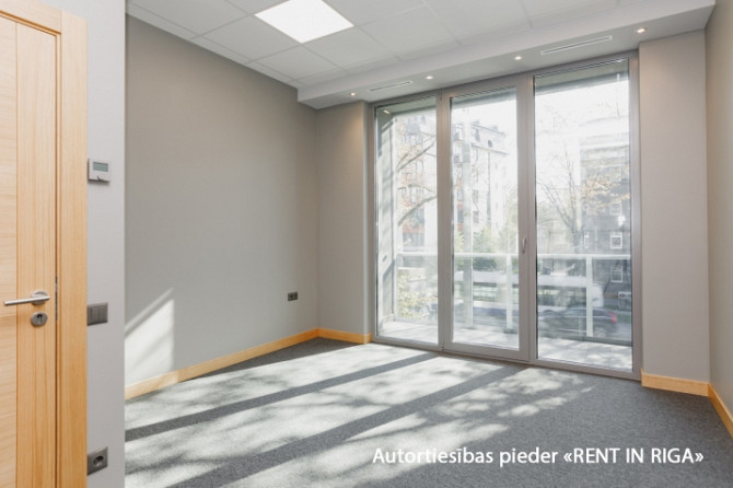 Modern and representative office with large windows in a new building in Teika. Layout: open-plan w