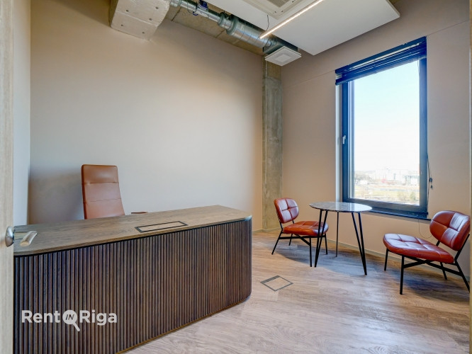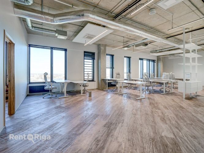 Modern office with an open-plan layout on the 10th floor of the Place Eleven office building. 6 parking spaces are available (EUR 60/month + VAT per space). Layout: two open-plan office areas, two private offices, and a utility/storage room. Restrooms are located in the common areas. The office building is easily accessible both within walking distance from Riga city center and by private or public transport. Class A office building with Class A energy efficiency and BREEAM Excellent sustainability certification Spacious and representative lobby with reception Rooftop terrace with a relaxation area for employees Secure bicycle parking, shared showers and changing rooms for employees Convenient transport access from all districts of Riga Parking available for tenants and clients Service charge: EUR 2.50/m + VAT. The furniture shown in the photos is not included in the indicated rental price but can be purchased separately for an additional fee.