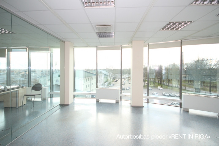 Офис в бизнес-центре "Valdo". 7-й этаж. В настоящее время офис состоит из открытого пространства и нескольких кабинетов. Туалет находится в общем коридоре. Планировку помещений можно изменить и адаптировать под нужды арендатора. Помещения оборудованы системой вентиляции и кондиционером. У здания просторная парковка. Дополнительно оплачиваются расходы на обслуживание и коммунальные платежи 5.9 EUR/м.