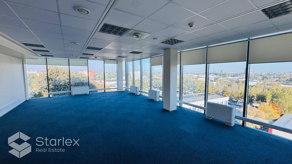 Офисное помещение с панорамным видом на Даугаву и Ригу. Высокий этаж. Офисное здание премиум-класса. В здании установлена система принудительной вентиляции и кондиционирования, ведется видеонаблюдение. Офис светлый, в хорошем состоянии. Для удобства сотрудников и клиентов на 1 этаже здания расположено кафе. Удобный доступ на личном транспорте. Очень удобная инфраструктура общественного транспорта. У здания имеется просторная бесплатная парковка. Планировка и внутренняя отделка помещений могут быть изменены по желанию арендатора. В помещениях выполнен косметический ремонт. 8 этаж - 302 м2 - 7 комнат, кухня, отдельный санузел. Прекрасный вид из окон. Арендная плата: 11 евро/кв. м. + управление + коммунальные платежи.