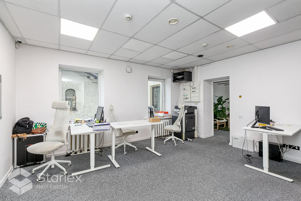 Сдается качественное офисное помещение в районе Вефа. Помещение расположено на 2 этаже здания. Общая площадь 85 м2 Планирование: - 2 рабочих комнаты открытой планировки, - 1 изолированный кабинет, - кухня и гостиная зона, - туалетный блок. Офис свободен - помещение без мебели, представленной на фотографиях. Отопление - Riga Heat (рассчитывается пропорционально арендуемой площади) Возле здания имеется бесплатная парковка, а также есть возможность арендовать парковочное место на территории. Здание расположено на улице Турайда, рядом с мостом ВЭФ и Т/Ц "Домина". Хорошая инфраструктура общественного транспорта (автобусные, троллейбусные и трамвайные остановки в нескольких минутах ходьбы). Арендная плата 8,00 евром2 + коммунальные услуги.