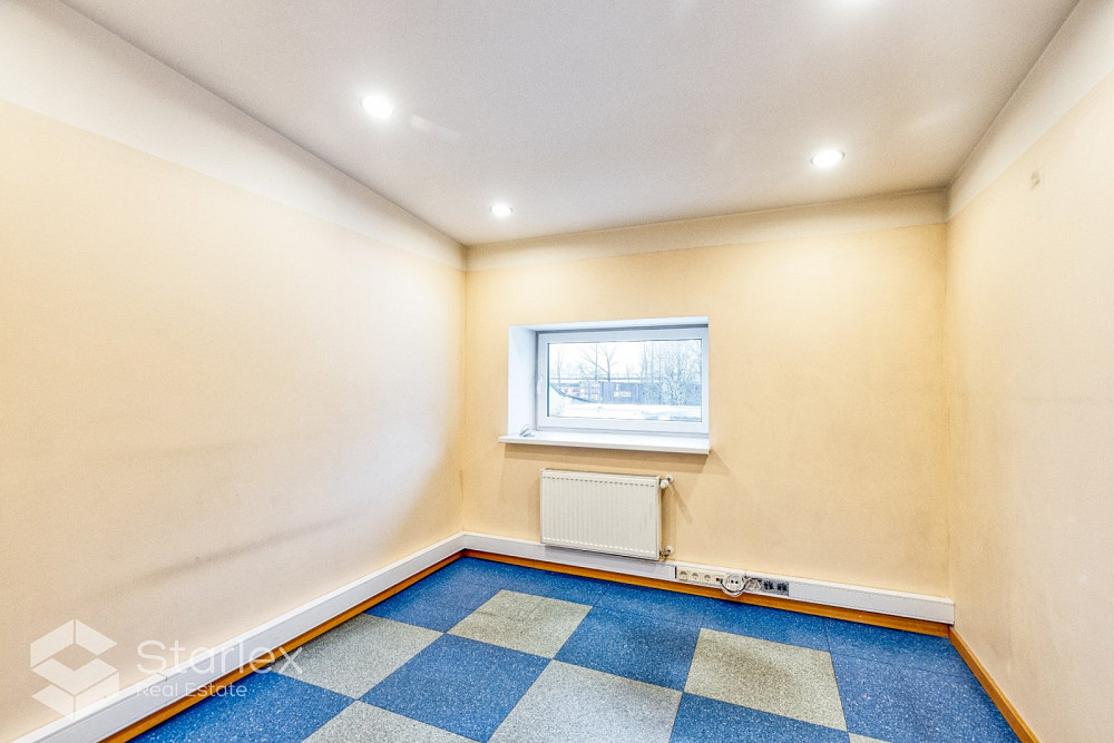 Сдаётся в аренду многофункциональное автономное здание на Ганибу дамби, на обочине улицы. Подходит под торговлю/выставочный зал/склад и офис. Хорошая видимость с улицы, возможность размещения рекламы. Здание имеет собственное автономное газовое отопление, 3 входа, площадь 1 этажа - 355 м2, площадь 2 этажа - 104 м2. На первом этаже расположено складское помещение площадью 95 м2 с лифтовыми воротами, торговый зал, 2 офисных помещения, бытовые помещения и кухня. На 2-м этаже расположены 4 офисных помещения и удобства. Светлые комнаты, кондиционер, просторная бесплатная парковка, все коммуникации, сигнализация. Территория вокруг дома составляет 1518 м2 и может использоваться свободно. Общая площадь 459 м2. Арендная плата 6 евро/кв.м. + коммунальные платежи.