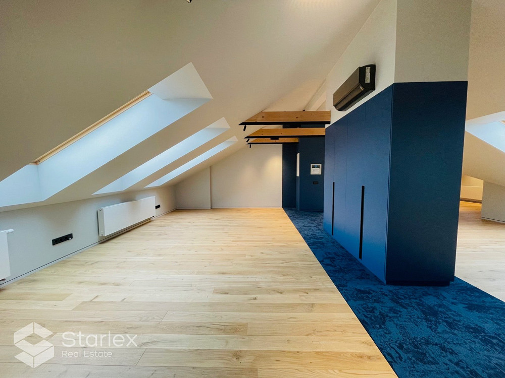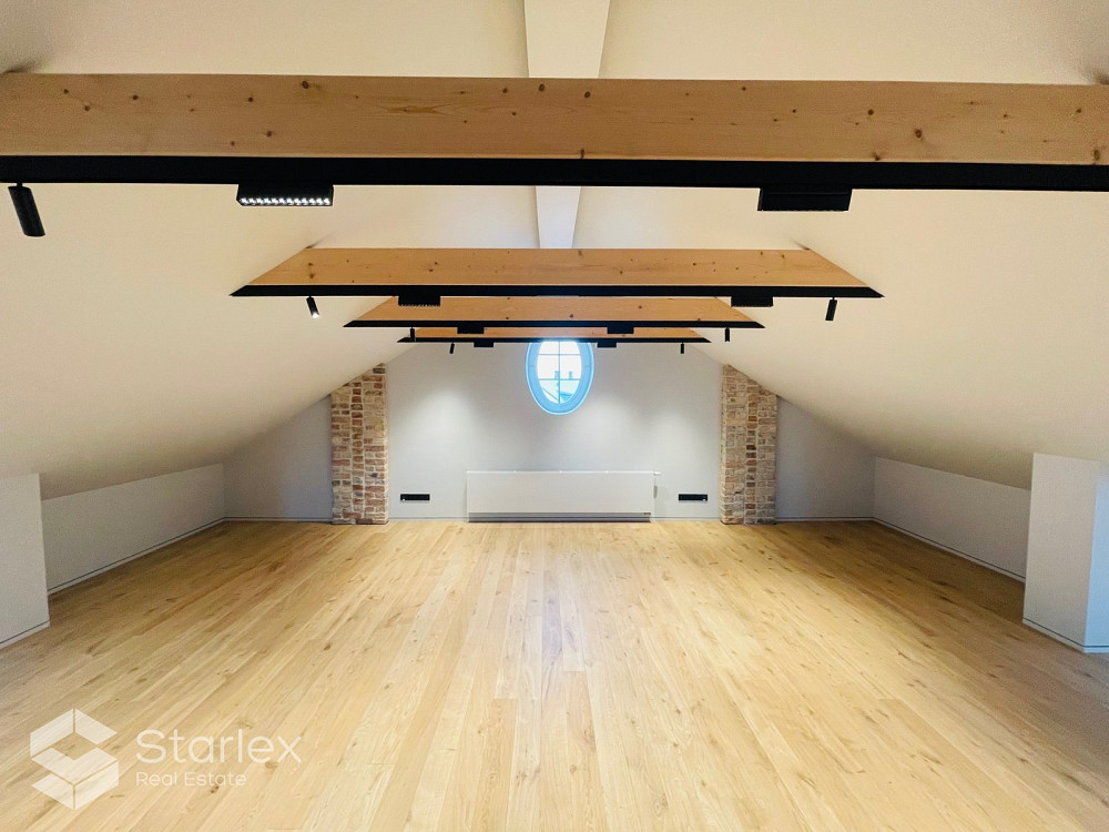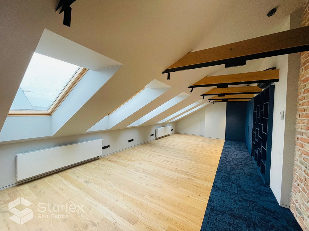 Сдаются в аренду качественные мансардные офисные помещения в отреставрированном здании в центре Риги, на улице Миера 2. Дом построен в 1912 году архитектор Г. фон Тизенхаузен. Доступны офисы с 1-3 квартала 2022 года, п Площадь каждого этажа ~ 250 м2, возможна аренда одного этажа, нескольких этажей вместе или всего здания вместе. Планировка: 5 рабочих зон открытой планировки, кухня, 2 санузла. Во дворе здания имеется около 12 парковочных мест, за дополнительную плату можно договориться по 2 парковочных места на каждом этаже - 100 евро/мес + НДС 21%; дополнительная парковка возле дома, платные парковки на улицах Миера, Шарлотта и Майзницас. Отделка: пол паркет; стены стены из крашеной штукатурки, а также стеклянные перегородки; потолок штукатурка/открытые исторические деревянные балки; освещение профессиональные офисные светильники; санузлы, облицованные плиткой, с высоким уровнем отделки. В каждом рабочем помещении будет предусмотрено кондиционирование воздуха (летом для охлаждения воздуха, зимой для дополнительного подогрева воздуха при необходимости). Недвижимость будет управляться профессионально. Платежи: - арендная плата 12 евро/м2 + НДС 21%. - плата за управление 1,5 евро/м2 + НДС 21%. - коммунальные платежи (вода, электричество, отопление, вывоз мусора). Налог на недвижимость включен в арендную плату. Рассматриваются только долгосрочные договоры аренды. В районе хорошо развита инфраструктура общественного транспорта все возможные троллейбусные и автобусные маршруты находятся в 1 минуте ходьбы, также рядом со зданием находится трамвайная остановка.