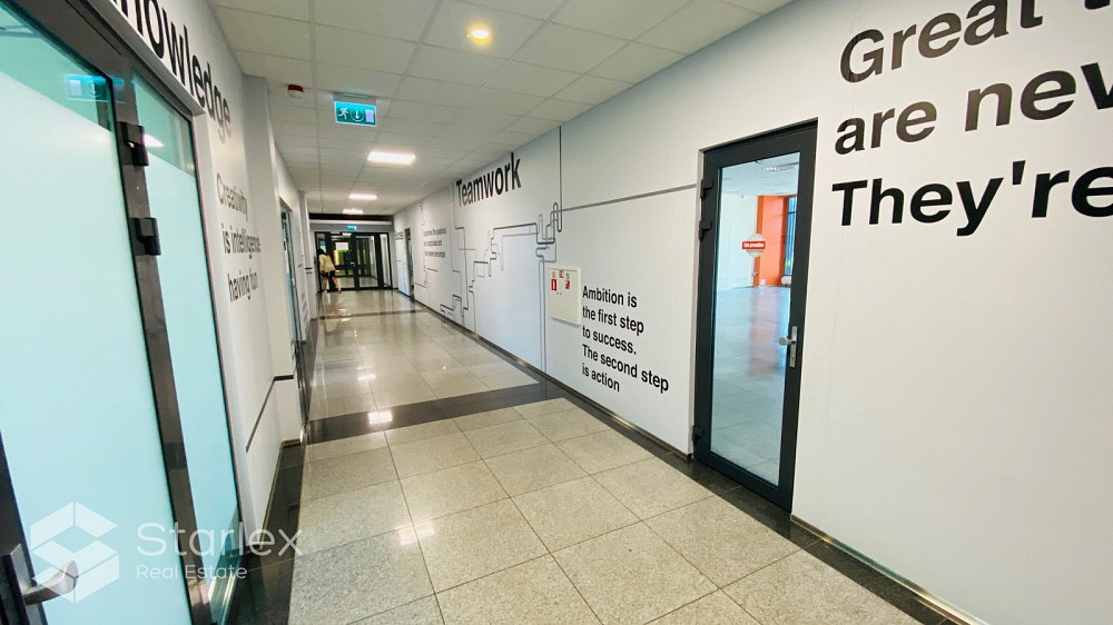 Современный, высококлассный бизнес-комплекс, расположенный в Пардаугаве, на Виенибас гатве 109 - в зеленом, благоустроенном районе. Хороший общественный транспорт. Развитая инфраструктура, стратегическое расположение и чистая экология. На 1 этаже здания расположены кафе и различные предприятия сферы услуг, детский сад, спортивный клуб, медицинское учреждение и т. д. Вокруг много общественных зданий. В здании имеется просторный оборудованный конференц-зал площадью 150 м2 на 80 человек. На каждом этаже имеется душевая. В офисе имеется система кондиционирования, видеонаблюдение в здании, круглосуточная охрана, система контроля доступа. В стоимость данного офиса входит 1-2 бесплатных парковочных места на подземной парковке. Для клиентов - краткосрочная (до 2 часов) бесплатная парковка. Дополнительные места - 20 евро/мес. В офисе выполнена полная внутренняя отделка. При необходимости выполняется перепланировка и внутренняя отделка по Вашему желанию. 6 этаж. Великолепный вид из окон. Сдается офис площадью 136 м2 - прихожая и 4 отдельных кабинета (разделены стеклянными перегородками). Собственная кухня со встроенной техникой и серверная с системой кондиционирования. Арендная плата 9 евро/кв.м. м. + коммунальные платежи + управление (2 евро/кв. м).