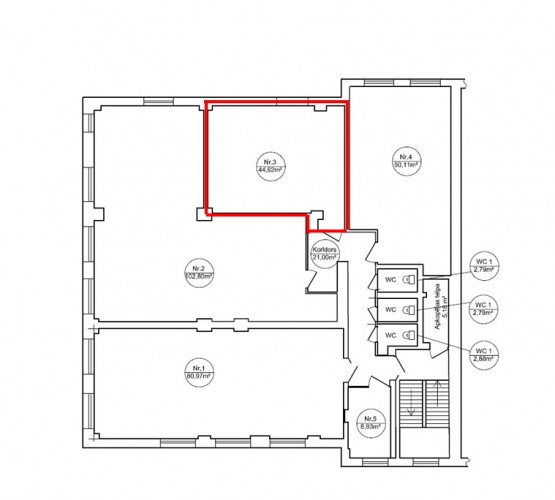 Светлый офис в качественно отреставрированном здании. Офис прямоугольной формы. Возле входной двери находятся общие туалеты и кухня. помещение оборудовано принудительной вентиляцией и системой кондиционирования воздуха; доступен оптический интернет и сигнализация; в здании своя система отопления; бесплатная парковка во дворе; рядом много заведений общественного питания; доступны складские помещения; 10 минут езды до центра Риги; вблизи расположены остановки общественного транспорта Rīgas Satiksme и пассажирская железнодорожная станция. Коммунальная плата 1 EUR/м. Депозит за безопасность 1 месяц аренды без НДС. В этом здании также доступны другие офисы площадью от 40 до 105 м.