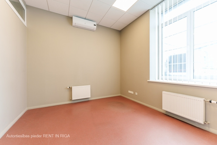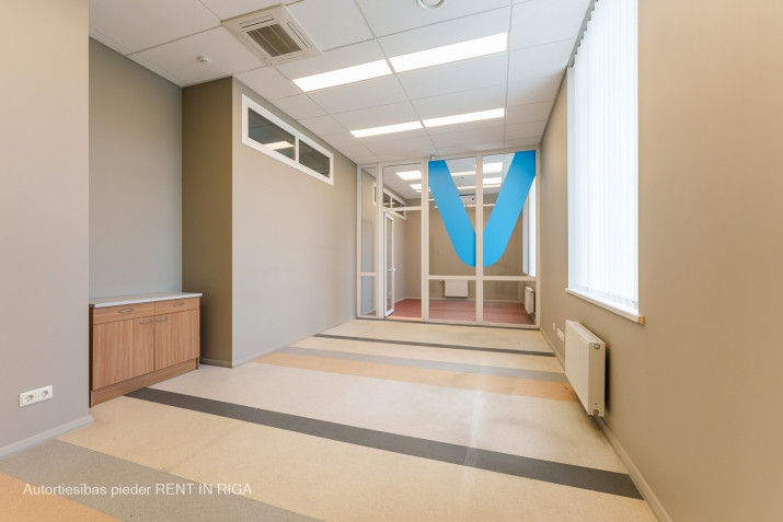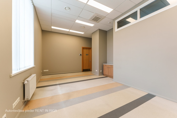 Светлый офис в качественно отреставрированном здании. Офис прямоугольной формы. Возле входной двери находятся общие туалеты и кухня. помещение оборудовано принудительной вентиляцией и системой кондиционирования воздуха; доступен оптический интернет и сигнализация; в здании своя система отопления; бесплатная парковка во дворе; рядом много заведений общественного питания; доступны складские помещения; 10 минут езды до центра Риги; вблизи расположены остановки общественного транспорта Rīgas Satiksme и пассажирская железнодорожная станция. Коммунальная плата 1 EUR/м. Депозит за безопасность 1 месяц аренды без НДС. В этом здании также доступны другие офисы площадью от 40 до 105 м.