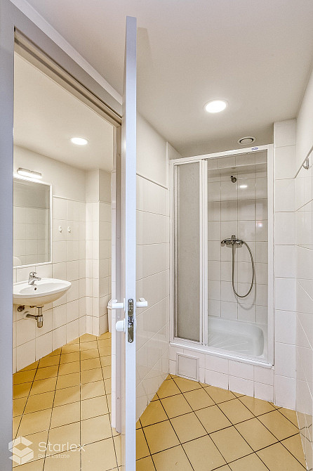 Telpai ir augsti griesti un ir savs sanmezgls ar dušu un tualeti.Telpai ir linoleja grīdas segums un jauna kvalitatīva apdare.