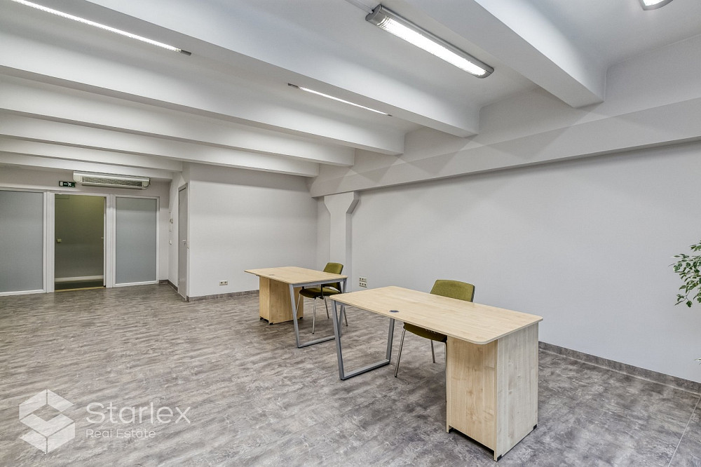 Konkrētais birojs ir ar platību 54 m2. Tā nomas maksa ir 5.5 eur/m2 un papildus maksa par apsaimniekošanu un komunālajiem pakalpojumiem.