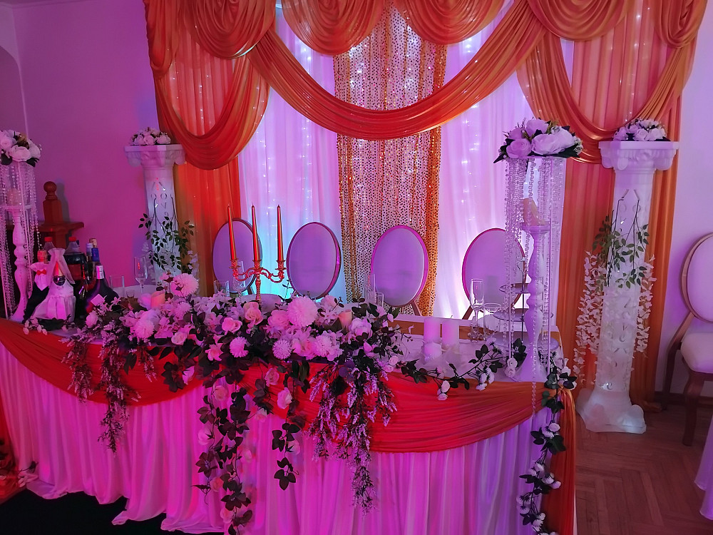 Полностью украсить один из залов или частично . Оформление территории , с арендой всех декораций . По желанию меню 25.30.35е. Обслуживание . Didzej+Ведущая 550e. Фотограф на весь день 400e. Ведущий 2в одном =400е.
