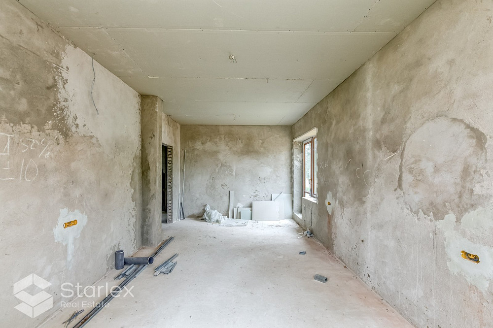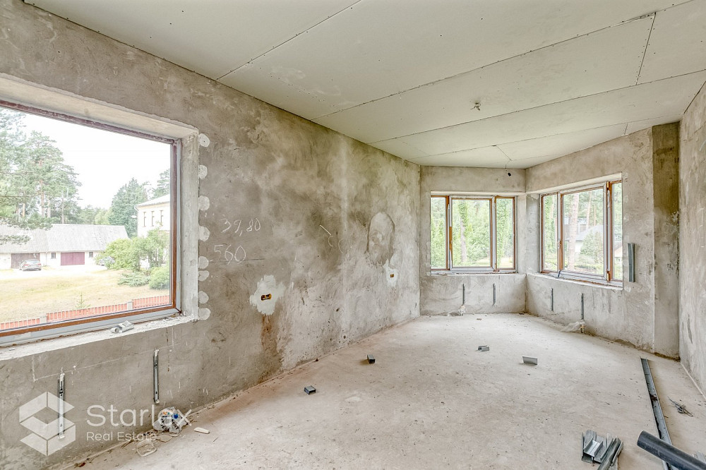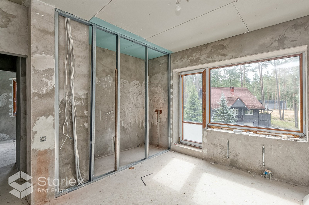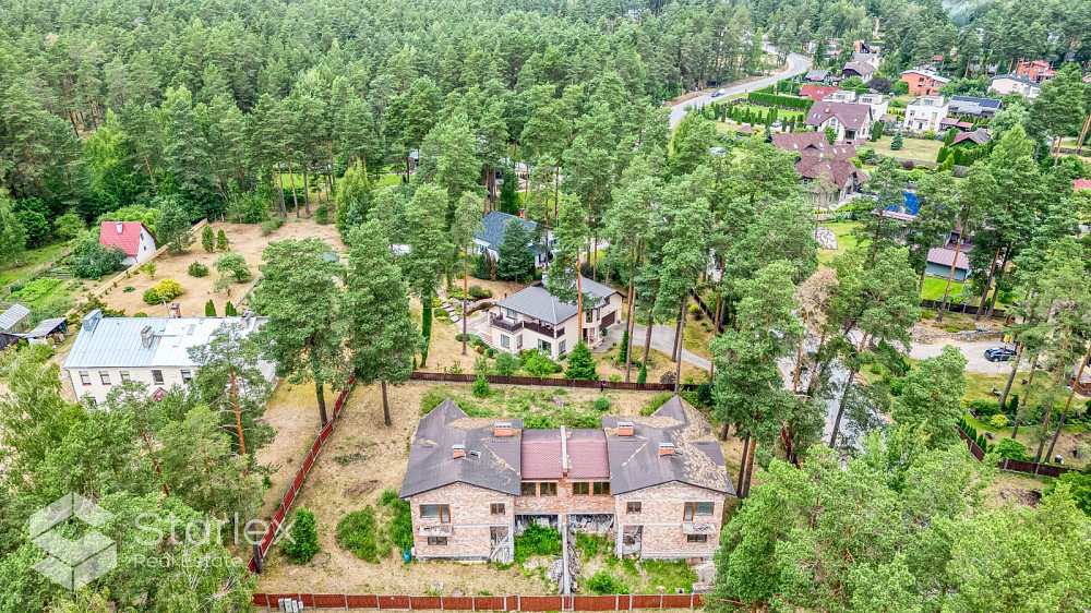 В привлекательном и ухоженном поселке частных домов у озера Лангстиню есть возможность купить половину или обе части двухквартирного дома, строительство которого необходимо будет завершить. Дом-близнец расположен на двух земельных участках по адресам: улица Медику 2D и улица Эленбургас 32.