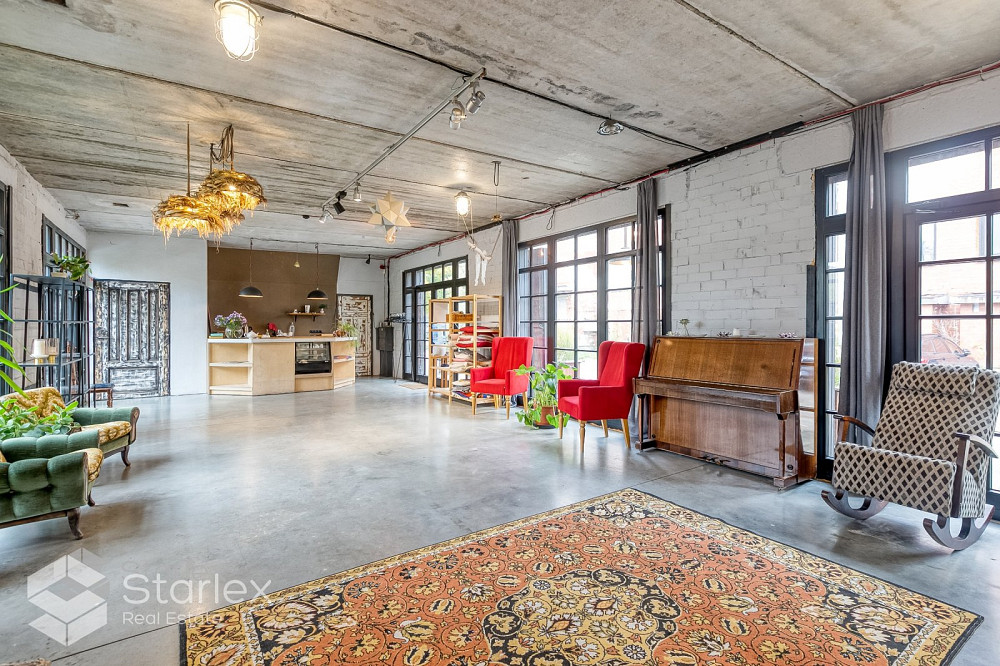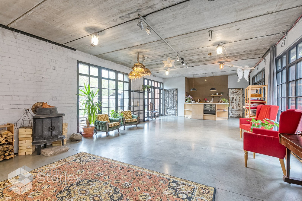 1) реконструированные части здания площадью 95 м2, в которых созданы современные многофункциональные помещения (одна большая комната студийного типа 78 м2, санузел 3 м2, отдельная комната (кухня) 14 м2) - теплые бетонные полы , большие деревянные окна-витрины на обе стороны здания, высокие потолки. Помещения подходят под офис, жилое помещение, торговлю, кафе, образовательное или медицинское учреждение и т.д. в.