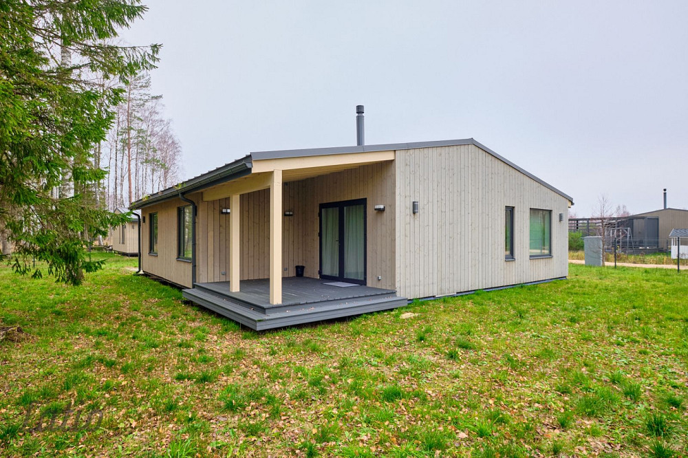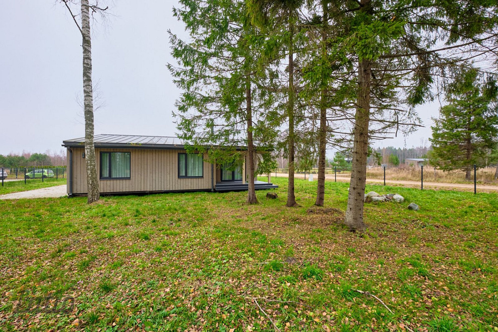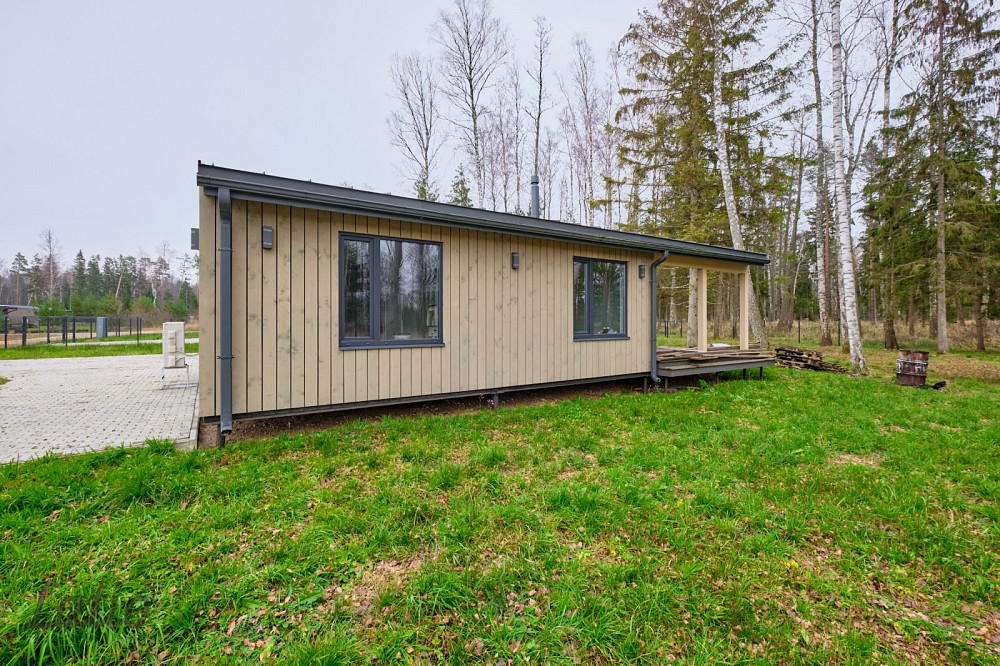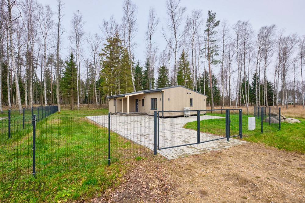 Pārdod tikko pabeigtu vienstāva māju ar plašu zemes gabalu Zvejniekciemā 350m attālumā no jūras.