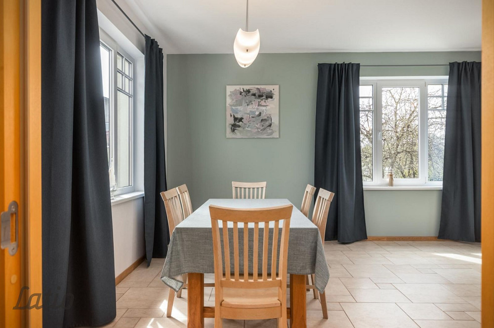 Izīrē ļoti mājīgu, daļēji mēbēlētu ģimenes divstāvu māju ekskluzīvā privātmāju rajonā Siguldā. Mājas plānojums: pirmajā stāvā plaša dzīvojamā istaba ar kamīnu, kas rada mājīgu atmosfēru, pilnībā aprīkota virtuve ar visām nepieciešamajām mēbelēm un iebūvētu sadzīves tehniku - trauku mazgājamo mašīnu, cepeškrāsni, indukcijas plīti, ledusskapi, tvaiku nosūcēju, saimniecības telpa, sauna, priekštelpa, koridors un garāža ar elektroniski paceļamiem vārtiem, piemērota divu automašīnu novietošanai. Otrajā stāvā trīs izolētas guļamistabas, kabinets, halle. Īpašumam ir centralizēti komunikāciju pieslēgumi: elektroapgāde, ūdensapgāde, kanalizācija. Siltumu nodrošina centrālā gāzes apkure- pirmajā stāvā siltās grīdas, otrajā stāvā radiatori, kas nodrošina ērtu klimatu telpās. Piemājas teritorija 986 m2 ir apzaļumota un iežogota, ap teritoriju iestādītais tūju dzīvžogs sniegs privātumu. Teritorijā pieteikami daudz vietas dārza izveidei vai bērnu spēlēm. Māja atrodas klusā un ģeogrāfiski izdevīgā vietā, tuvu Siguldas senlejas pastaigu takām, kas piemērotas gan aktīvās atpūtas piekritēkiem, gan dabas mīļotājiem. Tuvumā pieejams viss nepieciešamais- skolas, veikali un veselības parūpes iestādes. Ideāla vieta dzīvošanai un atpūtai, kur ģimenes var izbaudīt mieru un dabu, un vienlaikus būt tuvu pilsētas priekšrocībām. Gaidām Jūs apskatei.