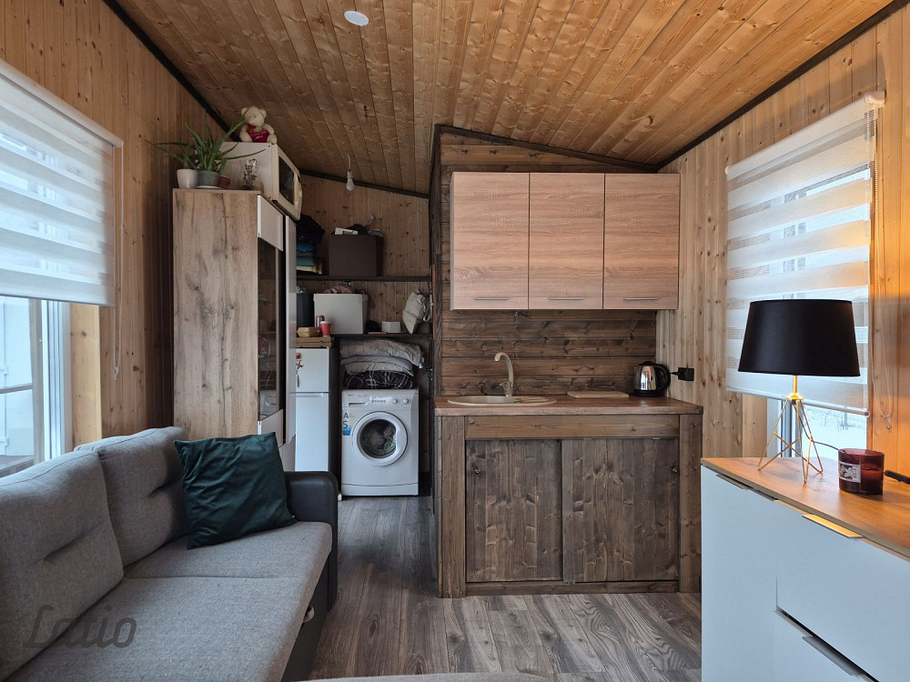Iebūvēta virtuve, kā arī tualete un dušas telpa.